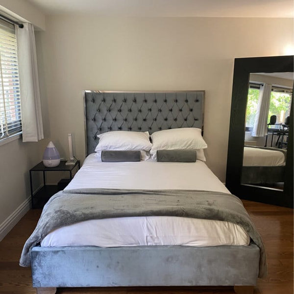 Olivia velvet upholstery bed frame not only adds a touch of luxury to the bed room but also helps to provide a soft and comfortable surface to lean against or rest upon. This makes it an excellent choice for those who enjoy reading or watching TV in bed, or for anyone who wants to create a cozy and comfortable sleeping environment.